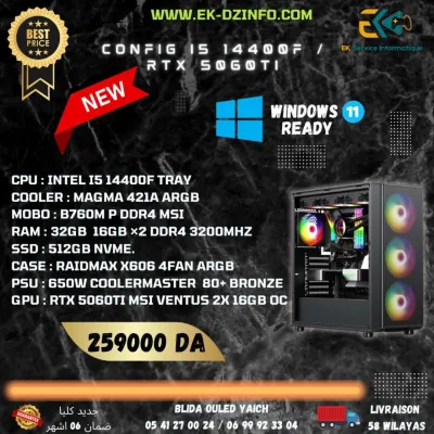 PC Gamer Neuf / PRIX : 22 Millions à Oran. 1) CPU : Intel Core i5 14400F Tray 2) Cooler Master Hyper 212 Spectrum V3 3) Carte mère : MSi PRO B760M-P DDR4 4) 32GB CUSU (2×16GB) DDR4 320