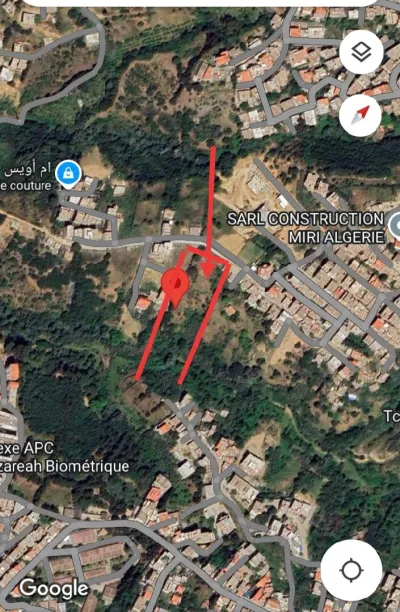 للبيع قطعة أرضية صالحة للبناء كائنة في بلدية بوزريعة في حي واد البرتقال مساحتها 7398بعقد موتق فيها طريق ما