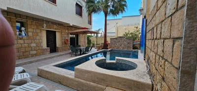 كراء فيلا من طابقين الطابق الاول متكون من غرفة وصالون ،مطبخ، حمام ،مرحاض وساحة وڨراج وخزان كبير للماء وز