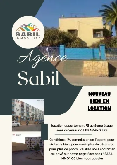 Annonce : 0455 🏠-Le type de transaction : #Location 🏠-Le type de bien : #APPARTEMENT 🏠-La localisation du bien ; #LES AMANDIERS ; ORAN 🏠-Agence SABIL IMMO propose #APPARTEMENT