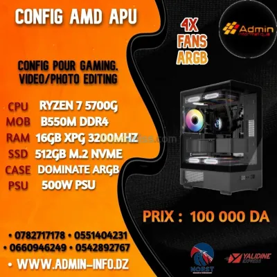 ✅INFORMATIONS GÉNÉRALES : ✅Désignation : CONFIG AMD APU - RYZEN 7 5700G - B550M DDR4 - 16G XPG 3200MHZ - 512GB M.2 - 500 W - DOMINATE ARGB 💻 CONFIGURATION GAMING & CRÉATION – P