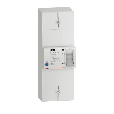 Caractéristiques produit Disjoncteur d'abonné Basse Tension BACO bipolaire 250V~ pour tarif à puissance limitée (tarif bleu) de 3kVA à 36kVA - Intensité nominale 60A Fonction