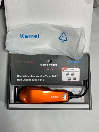 Tondeuse à cheveux KEMEI 9012 neuve jamais utilisée Marque : Kemei Référence : KM-9012 Puissance : 10 watts Taper filaire Matériau de la lame Acier inoxydable Matériau du corps Plasti