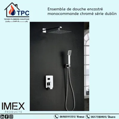 TPC vous assure la disponibilité d'un Ensemble de douches encastrables (Mono-commande chromé série Dublin ) Pour plus d'informations techniques, contactez-nous