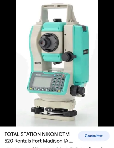 Nikon DTM-520 total station with 3 angle accuracy and dual compensator on V&H axis to compensate tilt error in any directions. Data transfer to a personal computer or any data collectors is