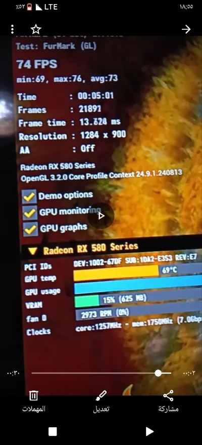 GPU : 580 8 gb rx 2048sp حاجة نظيفة وليس معدل عليها تم استخدامها في الالعاب فقط Compute Units 36 Base Frequency 1257 MHz Boost Frequency Up t