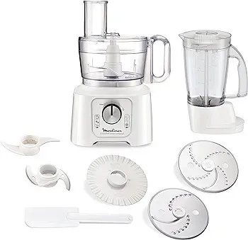 Robot multifonction Moulinex DOUBLEFORCE COMPACT 800 W avec Blender, 7 Accessoires FP544111 Cuisinez comme un grand chef avec le robot multifonctions Double Force Compact Blanc FP544111 de M