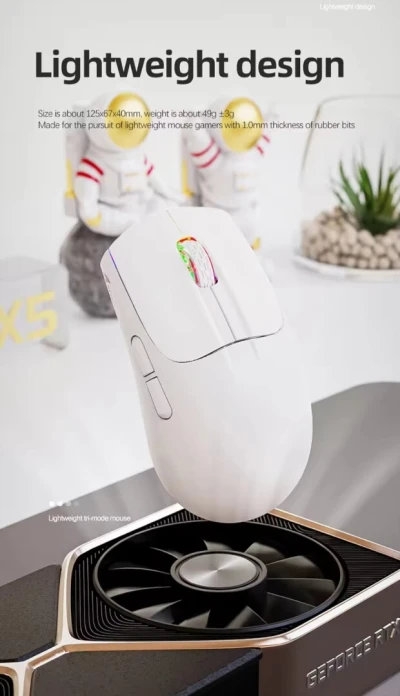 La Jedel WH104 est une souris sans fil à double mode, combinant connexion 2,4 GHz et Bluetooth, avec une résolution allant jusqu’à 3200 DPI. Elle dispose de 6 boutons, d’un design erg