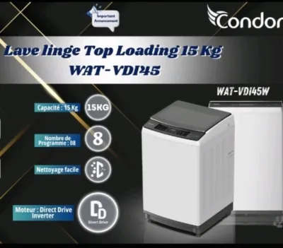 Promotion nouveau produit condor machine a lave 15 kg top ouverture par le haut direct drive inverter 8 programmes couleur grise garantie 24 mois Adresse maps (électroménager sofiane le b