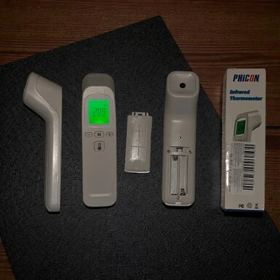 Thermomètre infrarouge sans contact avec un écran LCD rétro-éclaire dont la couleur change pour indiquer l'état de santé: 🟢 Vert : température normale 🔴 Rouge : alert de fièvr