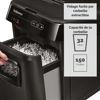 Nouvel arrivage de destructeur de document marque fellows -Destructeur de Documents Automatique AutoMax 150C, Coupe Croisée, Sécurité DIN P-4, 150 Feuilles, Corbeille 32L, Professionnel,