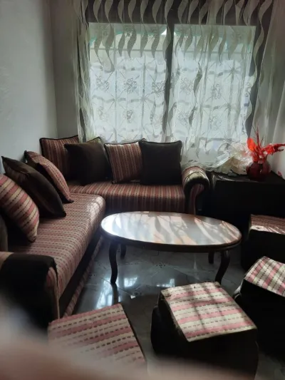 2 canapés ( 1,6m chacun ) et table carré angulaire ( 70cm sur 70 cm) et 4 pouffes (46cm sur 46 chacun) Prix : 45000 da négociable