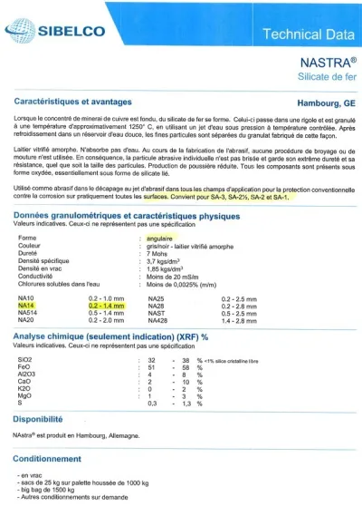 Bonjour , disponible grenaille ,silicate de fer angulaire 0.2 1.4 Sous emballage