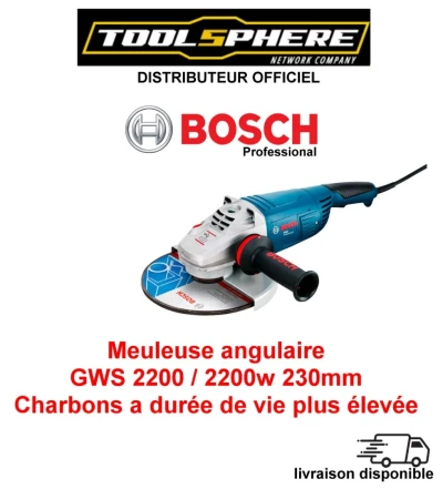 Bosch GWS 2200 (230 mm) Professional / Meuleuse angulaire Grande capacité d’enlèvement de matière Faible risque de panne Charbons à durée de vie plus élevée Fatigue réduite de l