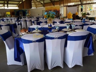 Location de table et chaise Noeud de chaise Housse de chaise Nappe Chemin de table Meuble décoratif Meuble lumineux Scène estrade Tapis rouge Deco mariage Lumière Sonor