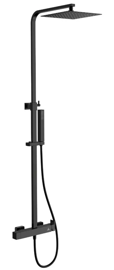 Colonne de Douche GRECIA AQUASSENT NOIR / NEGRO ✅ Ensemble de douche à levier unique avec une finition en noir mat, dans des formes rectangulaires pures parfaitement combinées qui se t