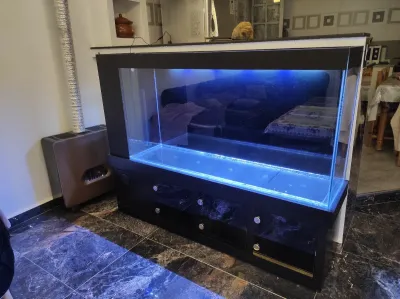 🟦 À VENDRE : Aquarium Design avec Meuble Intégré 🐠🌿 📏 Dimensions : Grand format, idéal pour poissons d’eau douce ou marine 🪟 Verre bombé de qualité, vision panoramiqu