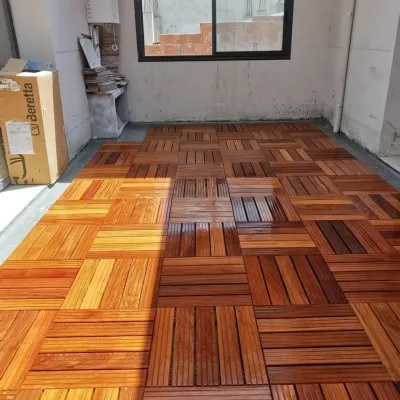 Nous vous proposons un revêtement sol extérieur en bois naturel exotique en dalle de : Dimensions : La dalle de 500x500 mm Épaisseur 38 mm Pour plus d'informations contacté nous sur.