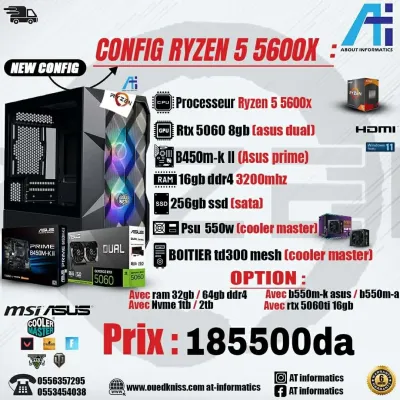 Config pc AMD ryzen 5 5600g B450M 8g ram 3200mhz SSD 256g مع امكانية تغيير كل قطعة حسب الطلب او اضافة اي قطعة كل قطع جديدة غير مس�