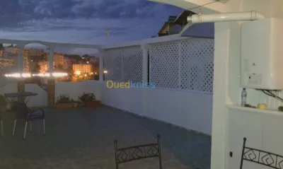 F3 meublé situé à Dely Ibrahim,à 50m du parc Dounia,au 4é etage avec avec cuisine ouverte ,2 chambres avec balcons,salle de bain avec douche italienne,wc separés,dressings dans chaque
