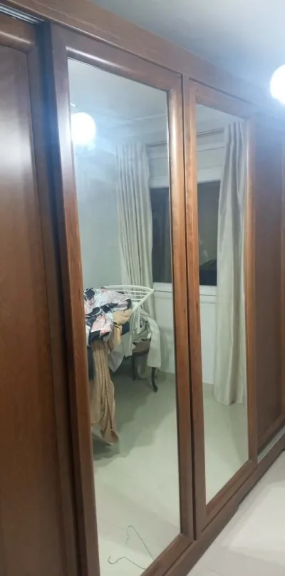 Salam ; Je mets en vente un très bel armoire en bois rouge avec 4 portes coulissantes 2 avec mirroir mesures 2,40*2,20 en très bon état comme neuf. Merci