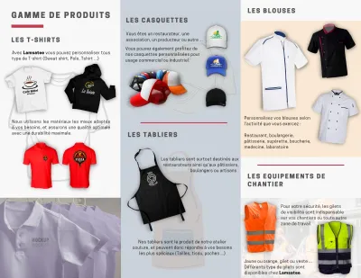 Notre entreprise vous offre la possibilité de personnaliser selon vos choix pleins d'articles en textile, à savoir : - Les Tshirts - Les Sweat-shirts - Les polo - Les casquettes - Les gile