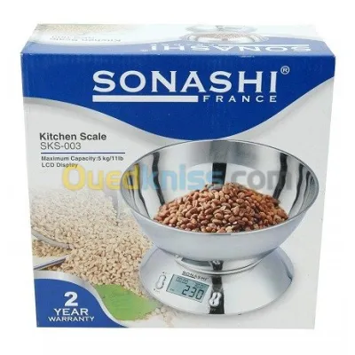 Balance de cuisine SKS-003 Caractéristiques du produit : • CAPACITÉ MAXIMALE: 5 KG / 11LB • AFFICHAGE LCD • GRADUATION: 1 G / 0,1 OZ • AUTO ZERO, ZERO OFF • AVEC MIN