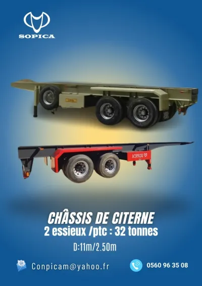 Châssis Citerne CARACTERISTIQUES TECHNIQUES. - Permet d'avoir une très bonne stabilité de votre citerne. - IPE soudé tout le long de votre citerne. D/ 11M /2.5OM
