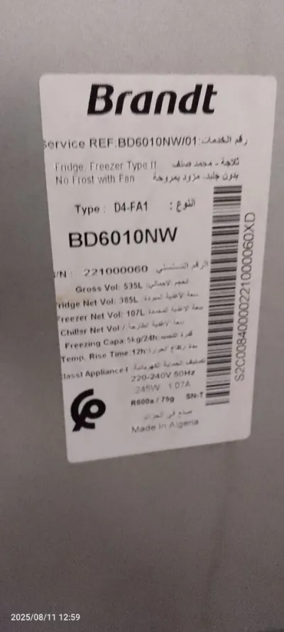 Réfrigérateur Brandt excellent état 535L Me contacter au