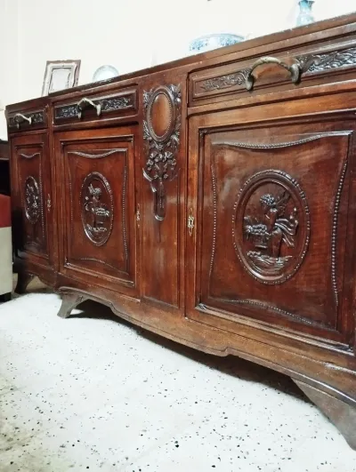 Je vends 1magnifique buffet très ancien en chêne sculpté d'anges. - 4 portes. - 4 tiroirs. N.B.: nécessite qq retouches ( des broutilles) Pour tout contact... Amine ... Wattsapp 00336057