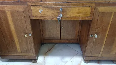 Bureau administratif en bon état avec trois 3 tiroir, très solide