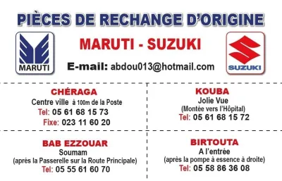 radiateur d'eau et clim MARUTI et SUZUKI 800,zen,alto,celerio,swift,k10,sx4 Centre ville de Cheraga (a 100m de la poste) on vend aussi tout les pièces de rechange MARUTI et SUZUKI si vous a