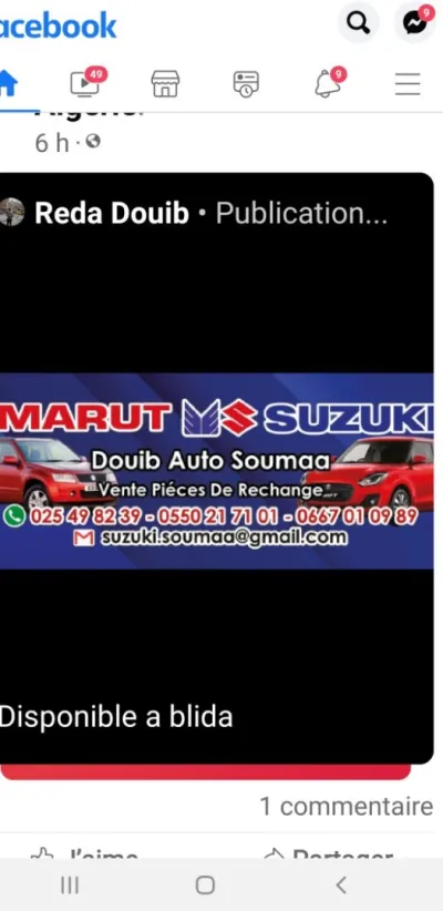 Capot maruti suzuki 800,zen,alto,celerio,k10,sx4,swift,dzire Centre ville de Cheraga (a 100m de la poste) On vend aussi tout les pièces de rechange MARUTI et SUZUKI Heur de travaille de s