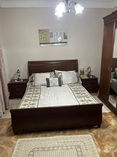 Chambre a coucher en hetre style louis philippe a vendre Lit 140/190 cm Armoire 5 portes Deux table de nuit + coiffeuse avec du marbre au dessus et un miroir Boumerdes