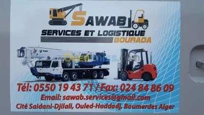 Nous sommes une société de services. Nous possédons des chariots elévateur et des grues de differentes capacités, et nous proposons nos services de location de nos engins dans toutes le