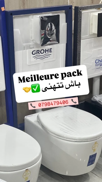 Meilleure pack suspendu pour budget ne dépasse pas 6M • chasse encastrée #grohe + cuvette suspendue #sanidecor aparté de 58500 DA Livrasion disponible à domicile en 24H Numéro de t�