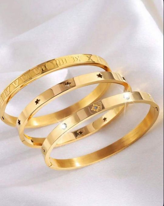 3 Pcs Of Fashion Light Luxury Design Stainless Steel Eight-Pointed Stars + Hollow Star + Digital Bangle Combination Suitable For Holiday Gifts Fo