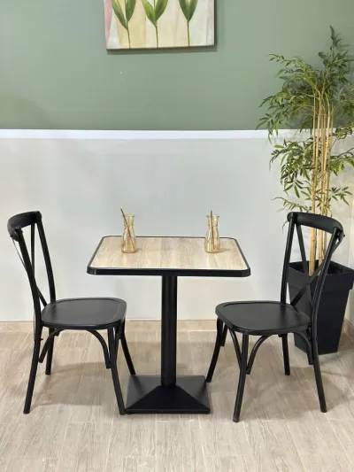 Vente TABLE en HPL et Chaises en HÊTRE pour Restaurant /Cafeteria -Table en HPL avec Pied Central Métallique 80/64 17500 DA -Table en HPL avec Pied Central Métallique 60/60 16500 DA -