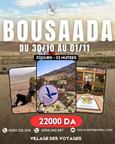 ✅ BOUSSAÂDA – La Cité du Bonheur ✅ ✨ Entre dunes dorées, histoire et traditions ✨ 🔔🔔 Séjour organisé à Bou Saâda 🔔🔔 ●➖➖➖➖➖● 📅 Dates : Du 30 Oct
