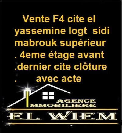 Vente F4 cite el yassemine 192 logt sidi mabrouk supérieur 4eme étage avant dernier cite clôture avec acte libre de suite.