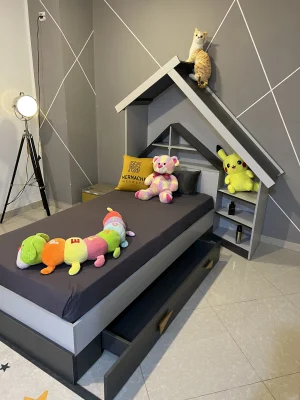 Découvrez le lit pour enfant de rêve, conçu pour transformer la chambre de votre petit trésor en un monde de magie et d'aventure. Notre lit pour enfant en mélamine de couleur gris est non seuleme
