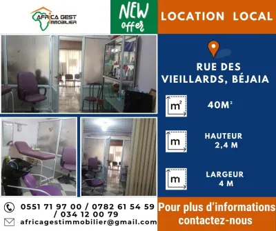À louer : Local commercial, au centre-ville de Béjaia, la rue des Vieillards. (Réf : LL/497) Africa Gest Immobilier met à votre proposition un local en location d’une superficie de 40m