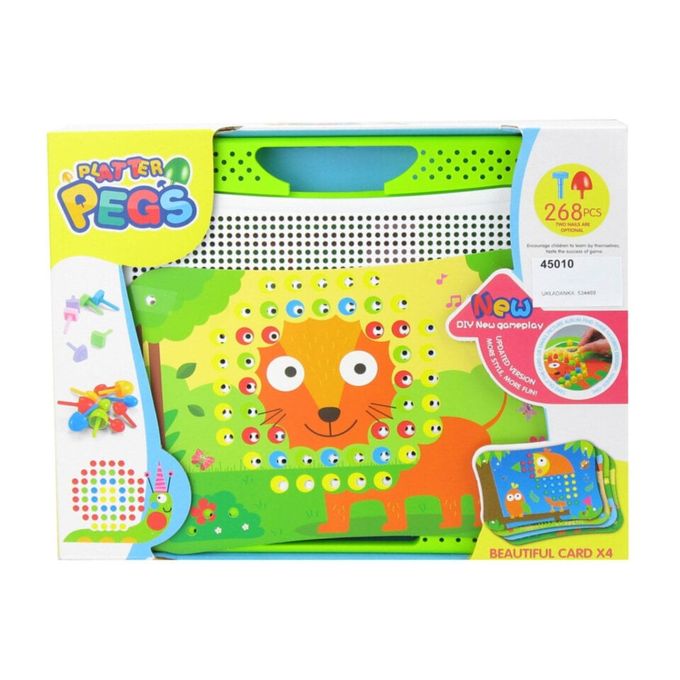 Un puzzle de perles colorées avec des animaux. Jusqu'à 268 éléments dans l'ensemble. Plusieurs images avec possibilité de résoudre le puzzle à l'aide de chevilles colorées. L'ensembl