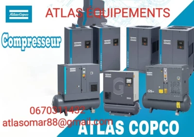 Des compresseurs atlas copco a pistons et a vis disponible 100L, 150L, 200L, 270L, 500L, 900L Compresseur a vis secheur intégré +citerne de 200L et 270L .