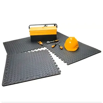 Ensemble de tapis articulaires anti-fatigue 4pcs 65497 • Couleur noire • Mousse EVA environnementale de haute qualité • Approuvé RoHS • Avec des frontières • 4 pièces embal