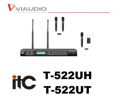 Microphone sans fil UHF ITC T-522UH/ T-522UT Fonctionnalité: * Double canal à affichage unique. * Le récepteur utilise une boucle à verrouillage de phase PLL avancée et un système de