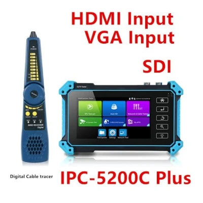 CCTV Tester IPC-5200 Plus,Full HD Display Video Monitor,8MP CVI TVI AHD SDI CVBS Tester with Cable Tracer, IP Discovery, 5inch IPS Touch Screen IP Camera Tester, PTZ Control,VGA and HDMI Inp