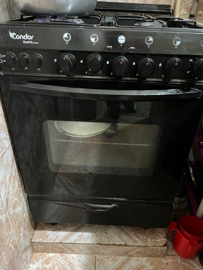 Cuisinière fonctionnelle, en bonne état. De marque Condor Elle présente 4 feux (un grand avec une cuisson rapide, deux moyens et un petit) et un four. Dimenssion 60*85. Pas de ventilati