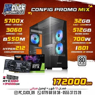 CONFIG R7 5700X + GIGABYTE RTX4060 -COOLERMASTER HYPER 212 - ASUS B550M -RAM 16GB RGB 3200MHZ -SSD 512GB SATA -MSI 600W + 80WHITE -CASE GEARMASTER GM39 3FAN ARGB +ECRAN FHD HYBROK 24" 180hz