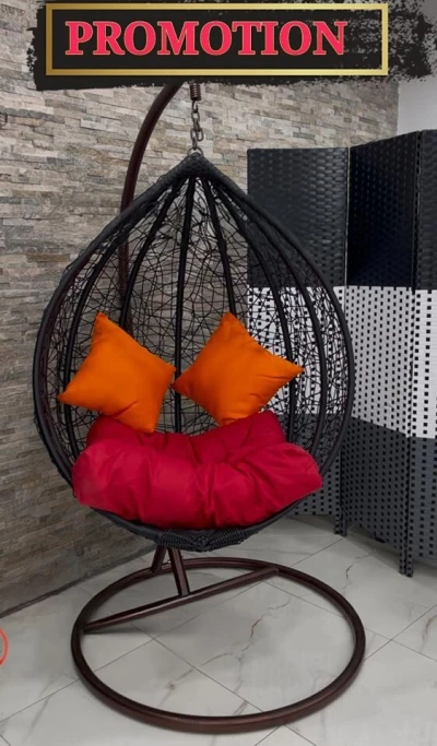 كرسي معلق خارجي من الخيزران الاصطناعي - تصميم بيضوي مع وسادة كرسينا المعلق المصنوع من الخيزران يتميز بإ�